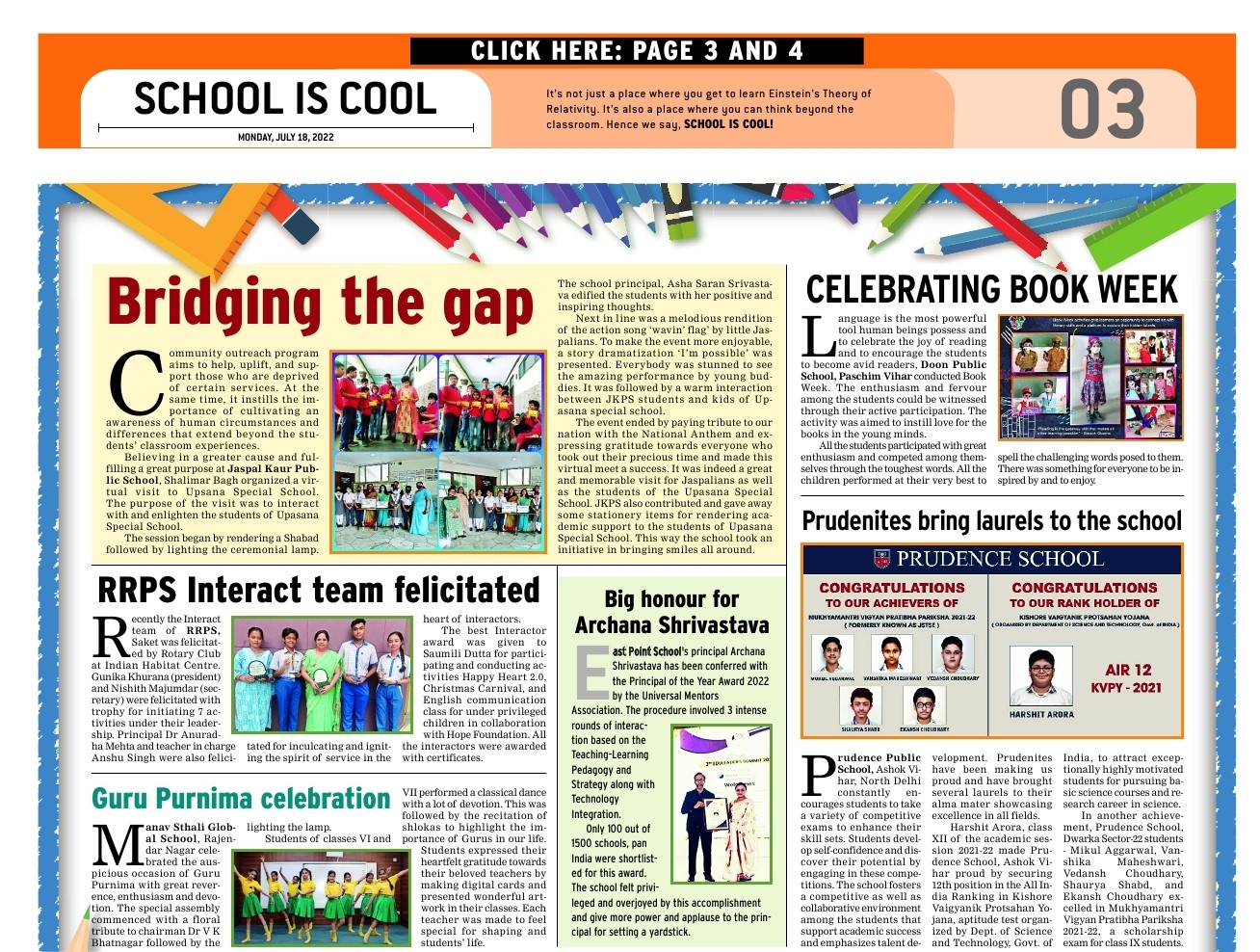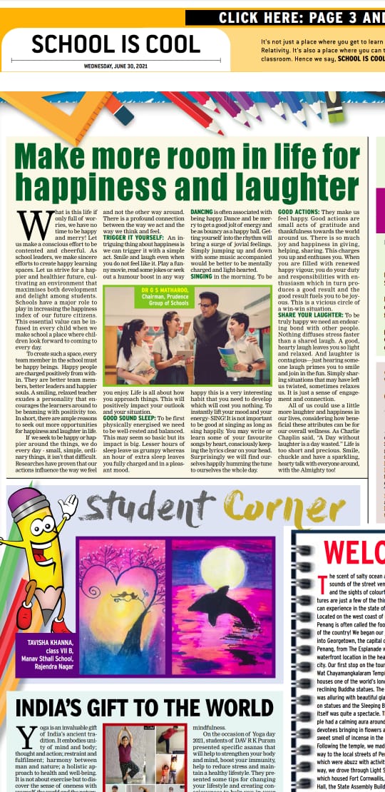 Read morePrudence has always been a stand for HAPPINESS and WELL BEING of its students , faculty and its entire fraternity. On page no 3 of today's Times ...